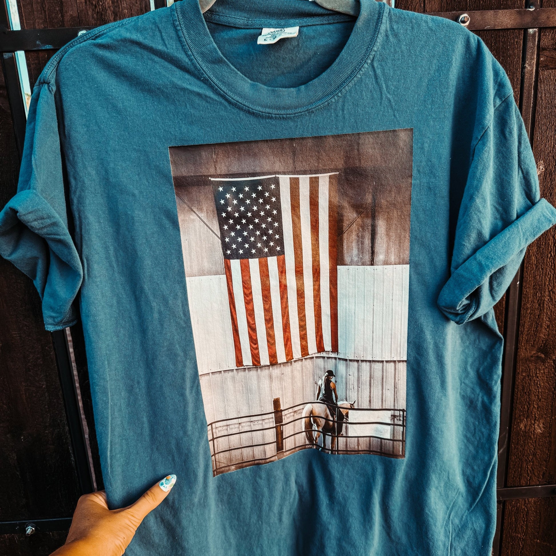 American Way Tee- Photo shot by Karli Ann Photography at an event