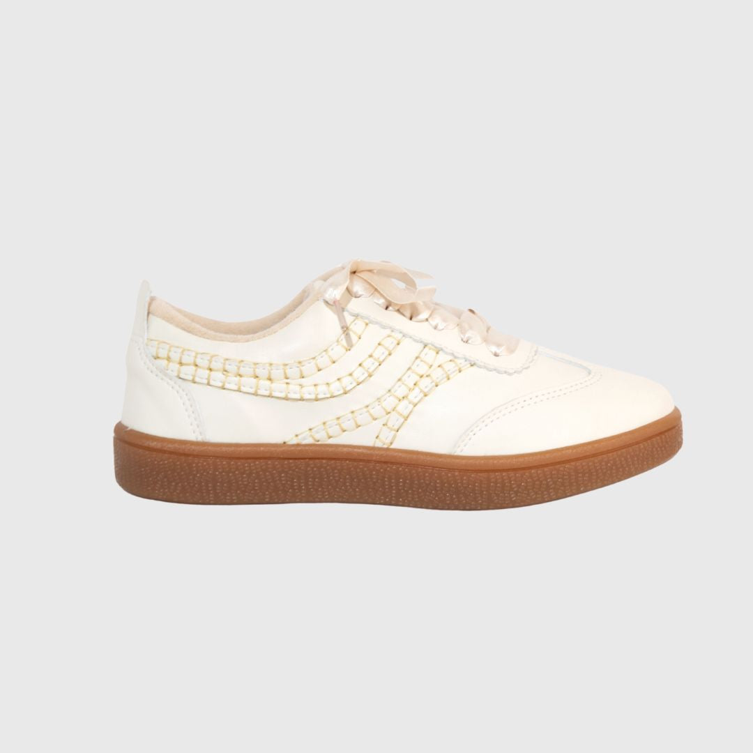 Celebrate two decades of style with our sporty sneakers. These stylish sneakers feature a stunning embroidered design that blends comfort and elegance perfectly, making them the perfect complement to any casual outfit. Their fabric laces give them a fashionista touch. Step out with confidence and let your footwear reflect your unique personality and love of style.