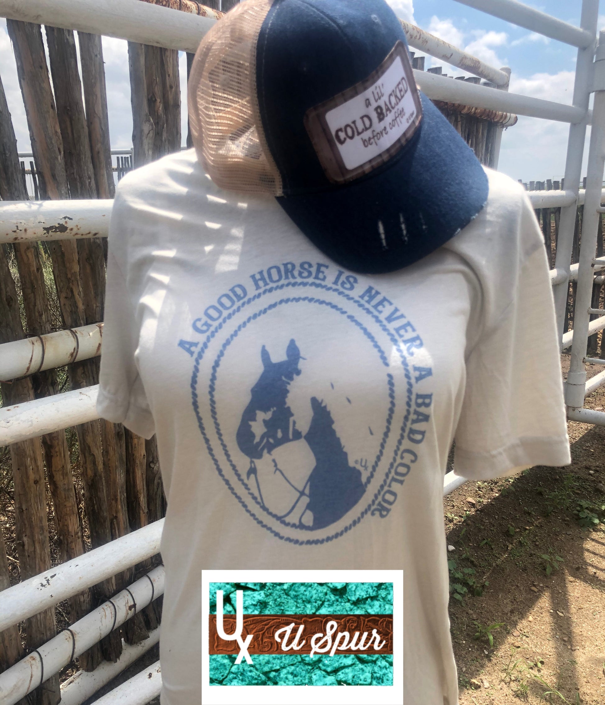 Denim blue vintage print on Bella Canvas cement crew neck tee