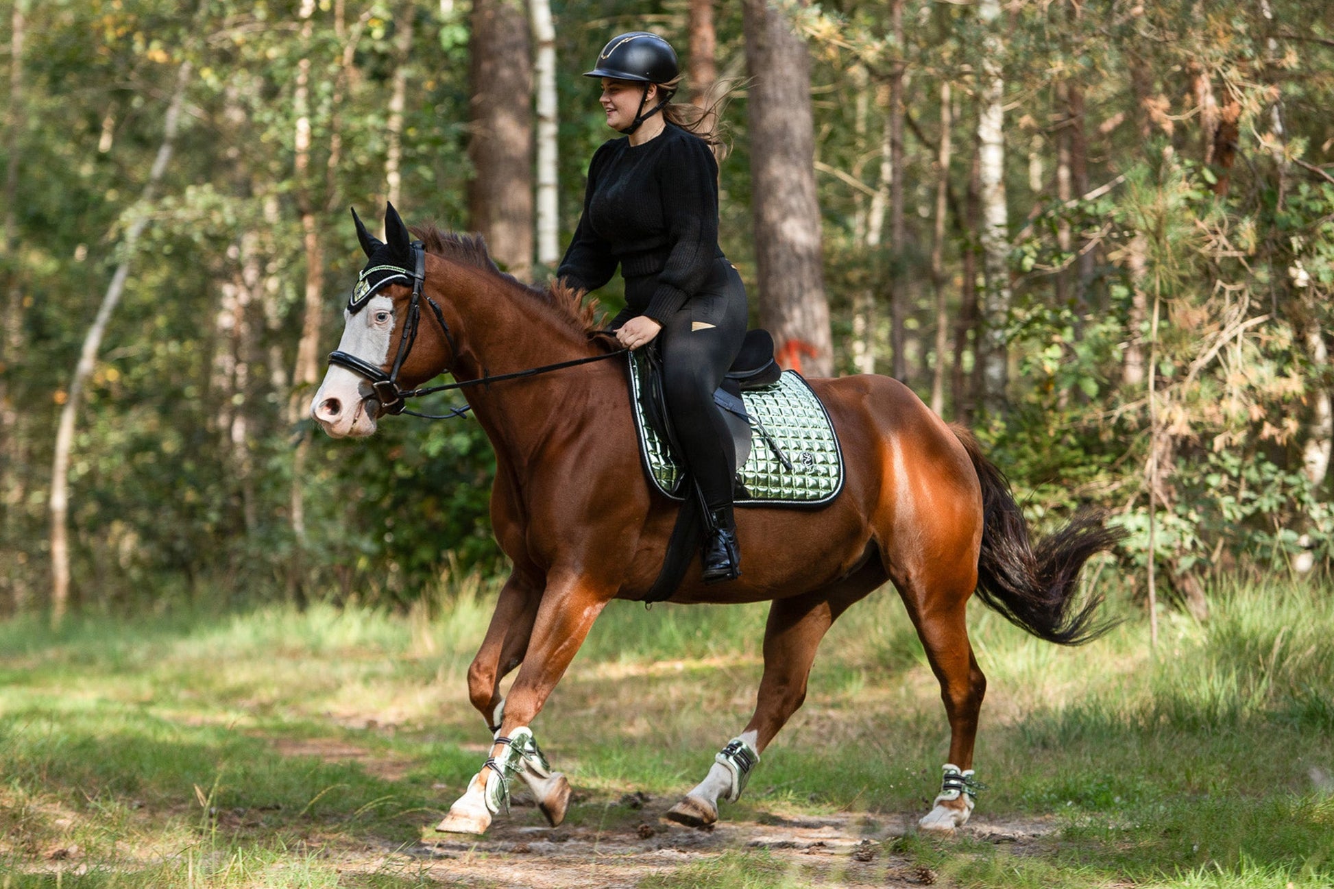 Created for magical rides into enchanting forests, the Green Lily Open Front Boots bring you luminous elegance in a bright light green shade. Perfect for nature lovers, this saddle pad set will make your horse stand out from the herd with an aura of luminosity that captures the essence of nature in all its beauty