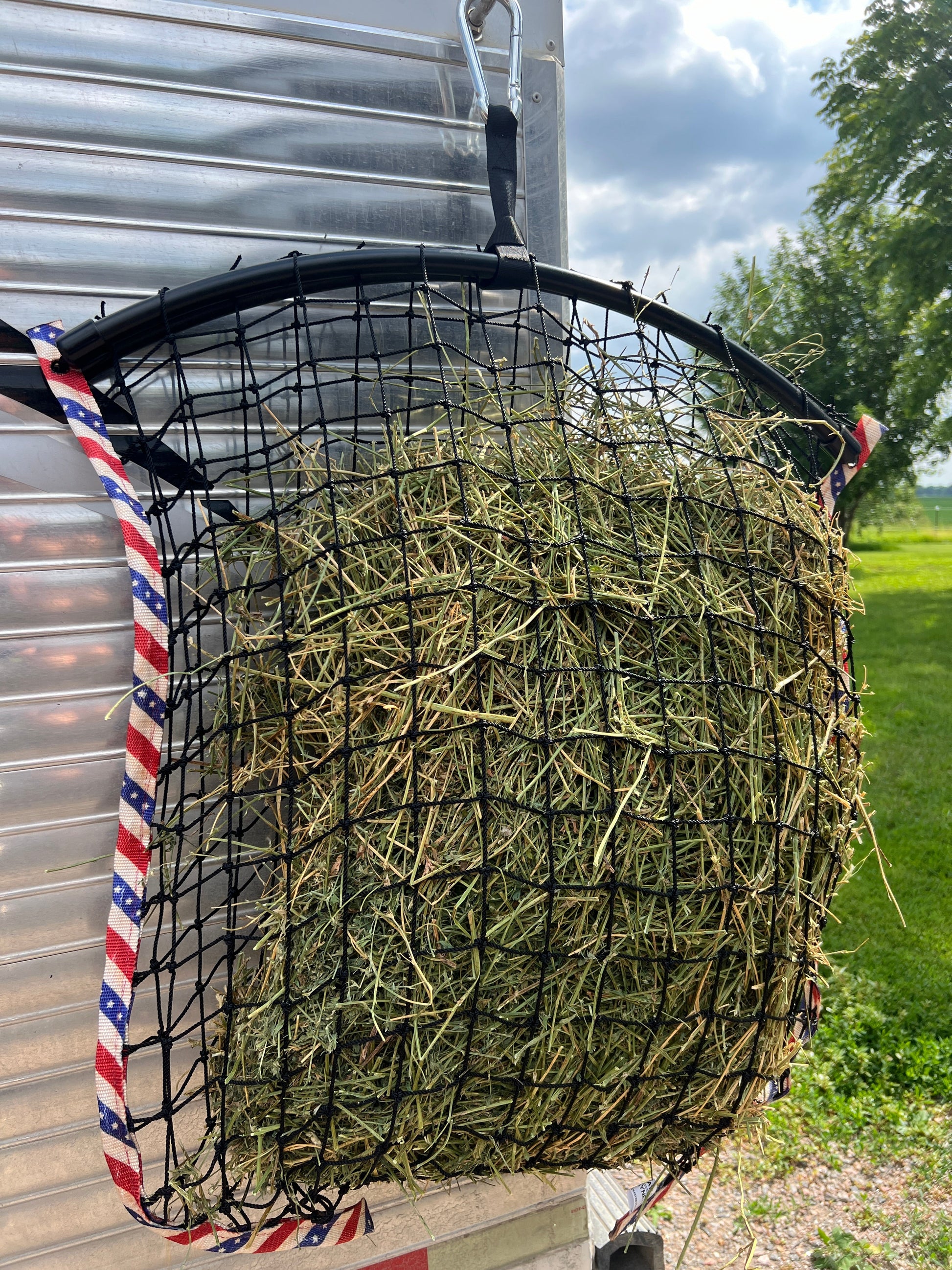 - Please use caution when there are horned animals, animals with ear tags, or horses with shoes, blankets, buckles or halters. When using a hanging net, ensure it's high enough that a horse cannot paw at it.