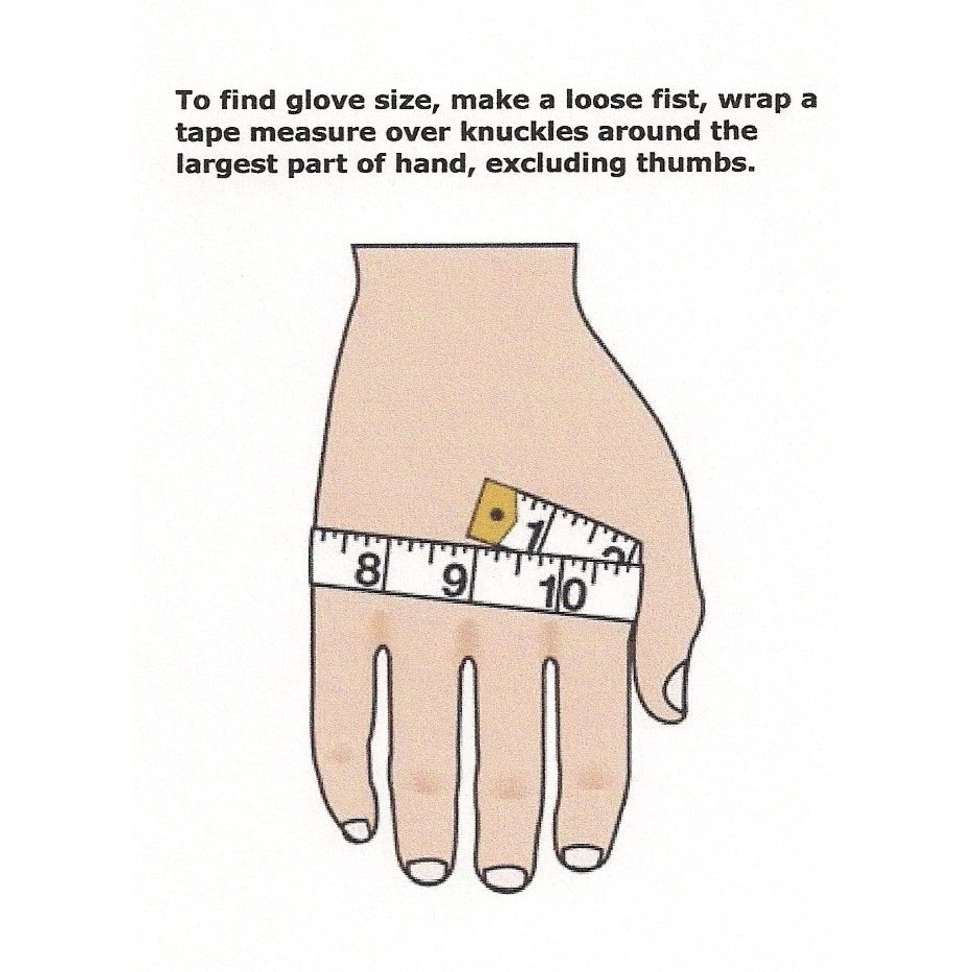 2) Measure around the widest part of your hand, excluding your thumb. The tape measure should be snug and straight, but not tight.