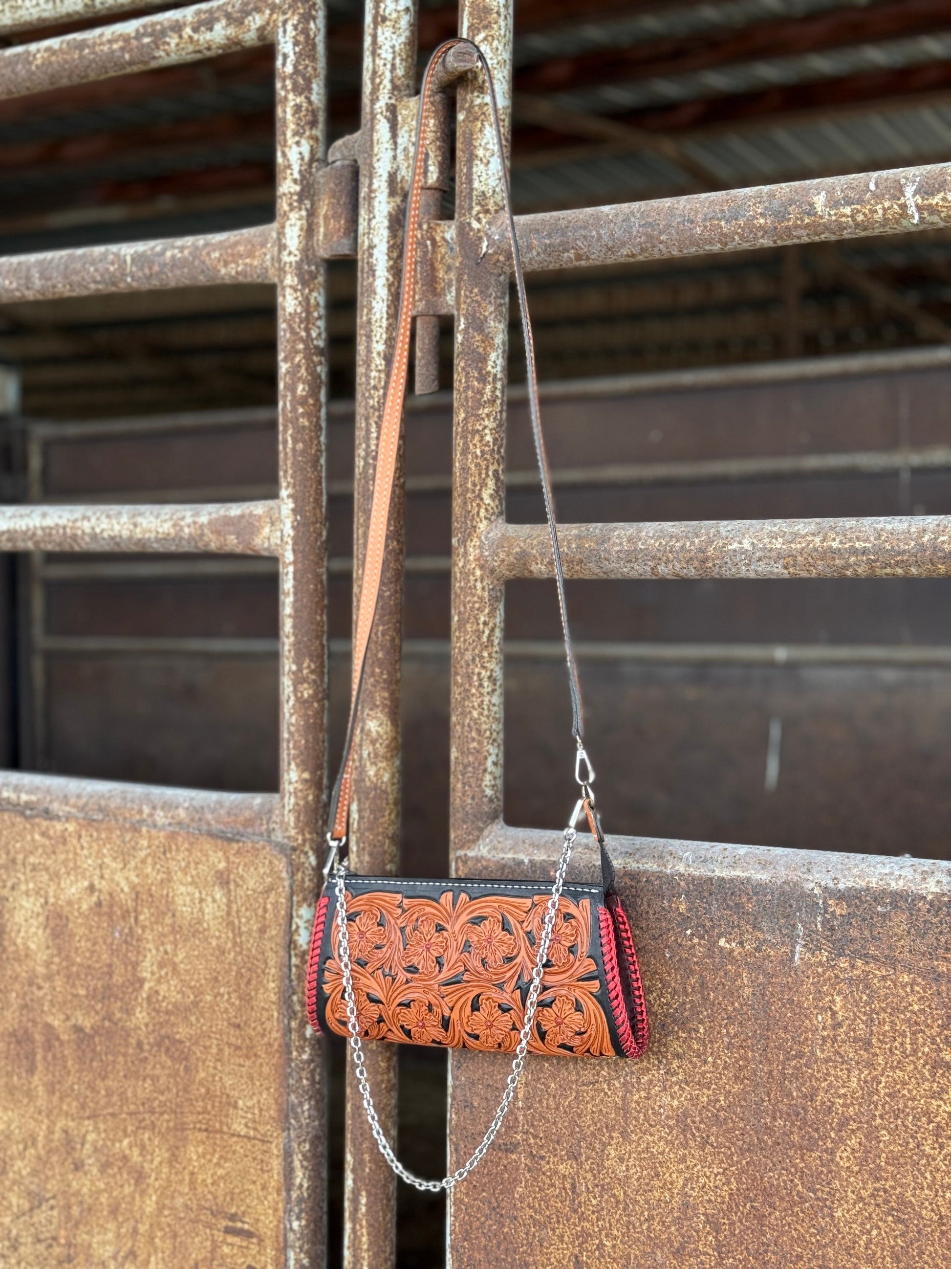 The Pony Purse- Craft for the cowgirl night out, our pony purse blends western with bold craftsmanship. 100% hand crafted. Comes with 2 strap options, 1- 1/2" wide leather strap that is 48" long, allowing you to use this as a crossbody strap, along with a weighted hardware silver chain that is 24" long allowing to also wear this as a clutch, both strap are removable, so you can also have it as a hand-clutch. Making this bag a 3-way option.