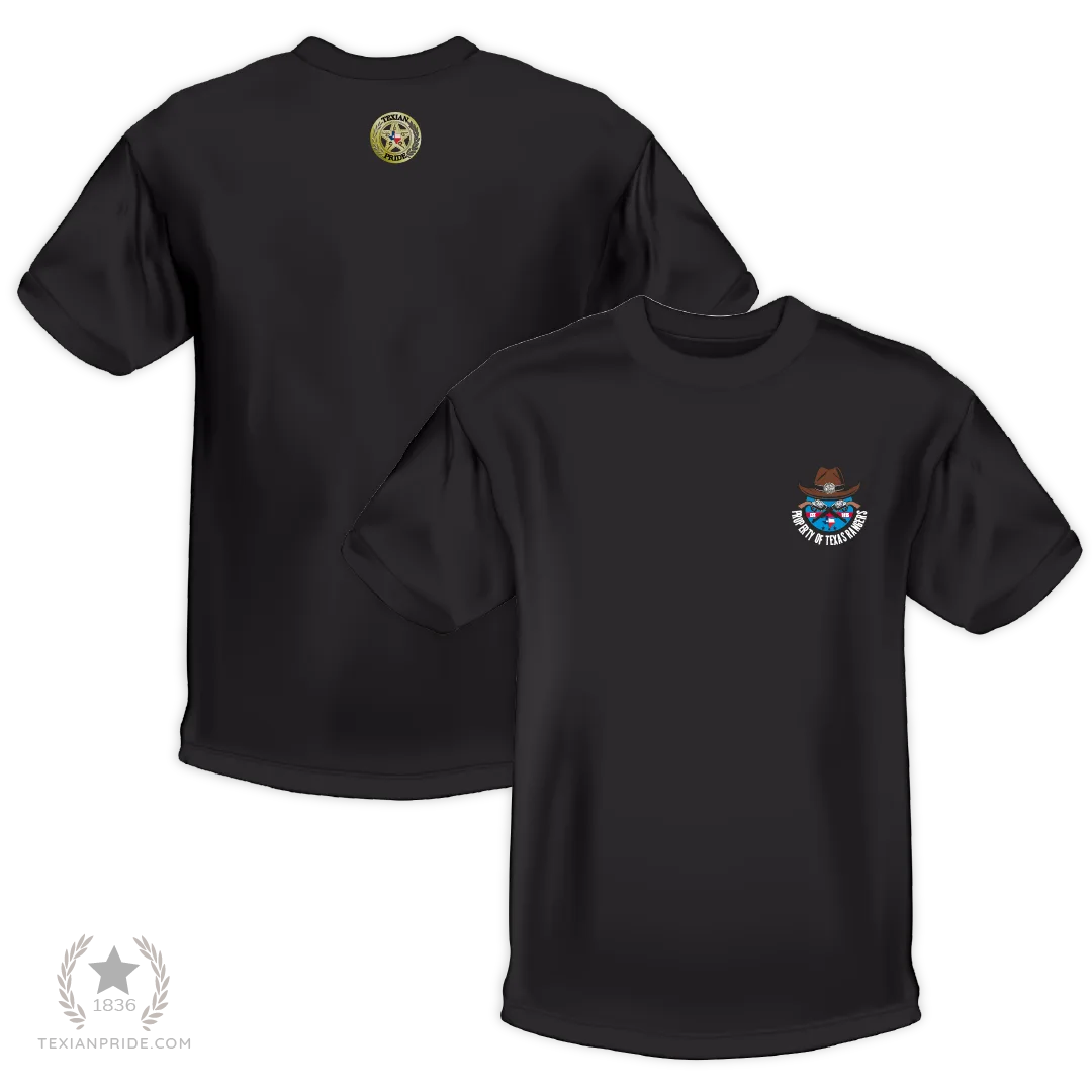 The detailed artwork proudly showcases the Texas Rangers badge, crossed revolvers, and a cowboy hat, embodying the strength and resilience of the state’s most storied lawmen. Whether you’re a history buff, a law enforcement supporter, or just someone who respects Texas-sized courage, this shirt makes a statement.