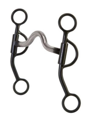 This black steel curb bit has a 5" sweet iron medium port mouth with 7" cheeks.