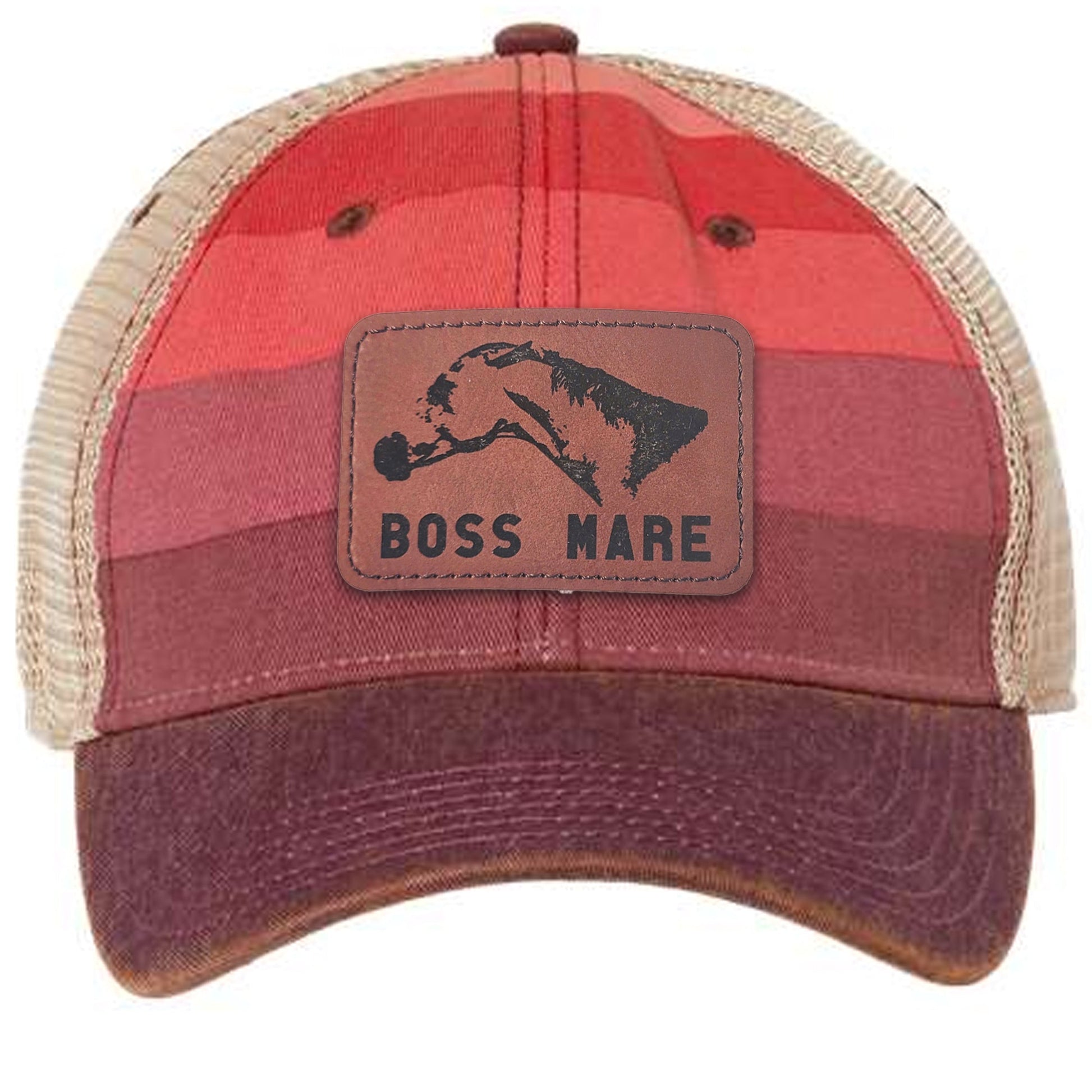The Boss Mare Logo Leather Patch Hat Vintage Red Stripe