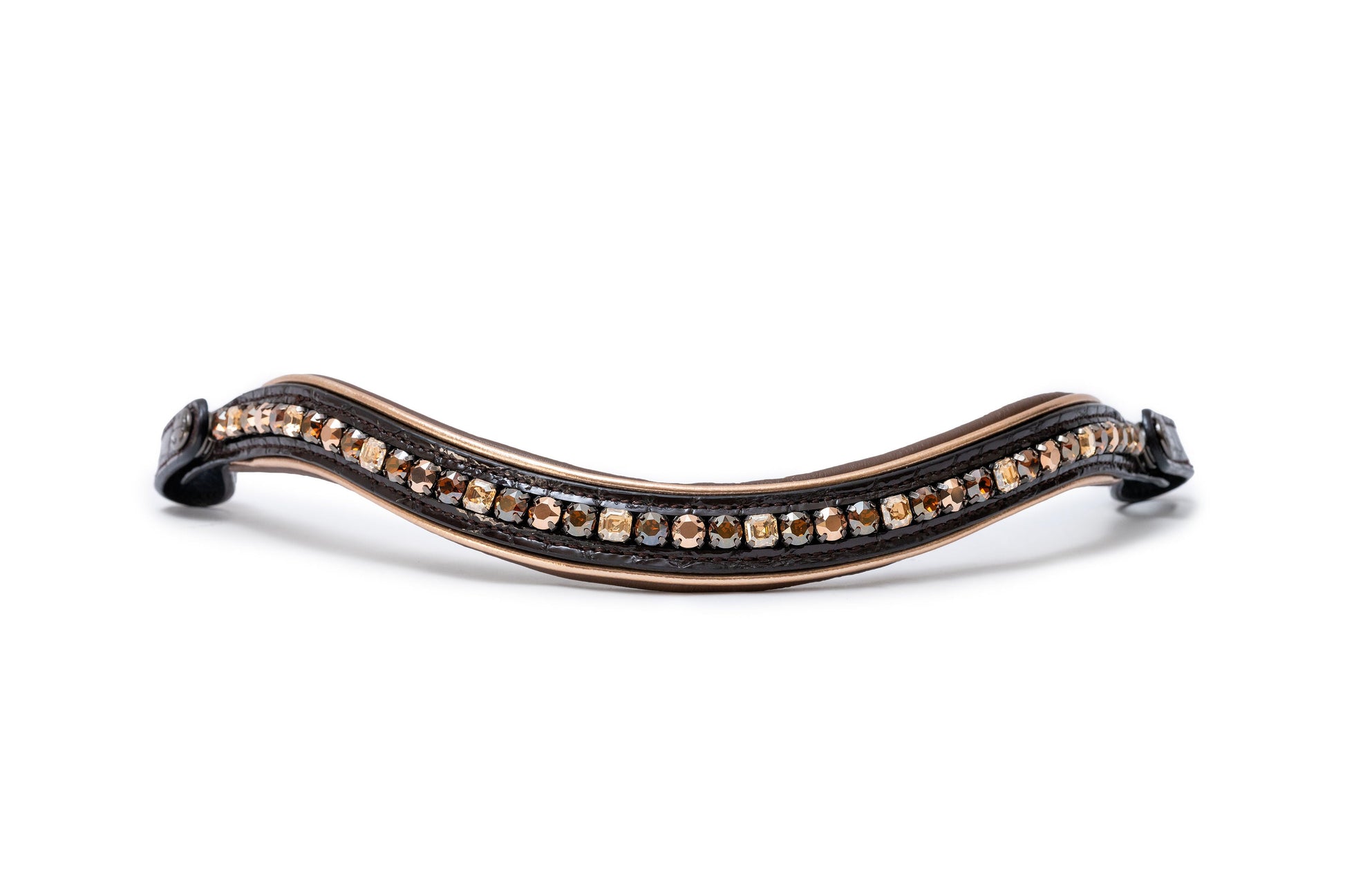 Crowned with a gorgeous browband design made with Princess Cut & Chaton Austrian Crystals in mesmerizing shades of Metallic Rose Gold, Champagne and limited edition coated Smoked Topaz.