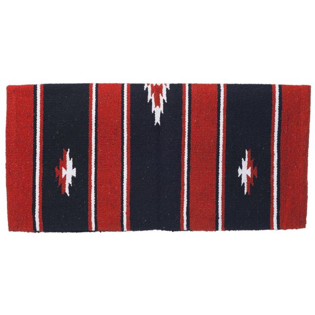 This economy saddle blanket is hand loomed from acrylic blend material and features traditional styled Navajo patterns in a wide variety of beautiful colors. It’s fine-medium weight makes it an affordable and quality choice for using over or under your saddle pad.